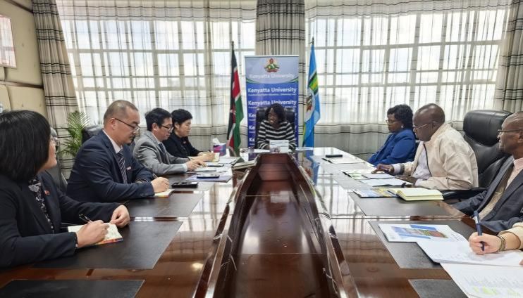 在肯雅塔大学,代表团与常务副校长卡罗琳·朗加特·索鲁瓦(Caroline Lang'at Thoruwa)教授和副校长瓦塞克·万乔希(Waceke Wanjohi)教授及相关学院负责人进行座谈交流,双方围绕人才联合培养、保障与支持体系建设、科研合作、学生短期交流、中文教育资源共同开发等议题深入探讨,并明确下一步合作方向和对接机制。