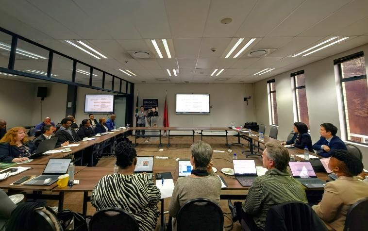 在南非大学,代表团与人文社会学部、理学与工程技术学部、经济与管理学部、研究生院、信息与通信技术处、国际合作处等部门负责人进行座谈。各部门负责人分别介绍了学科专业建设情况及发展优势,并就教师互访、合作研究、学生交换及海外人才培训等领域进行深入交流探讨,为双方开展校际合作奠定了扎实基础。